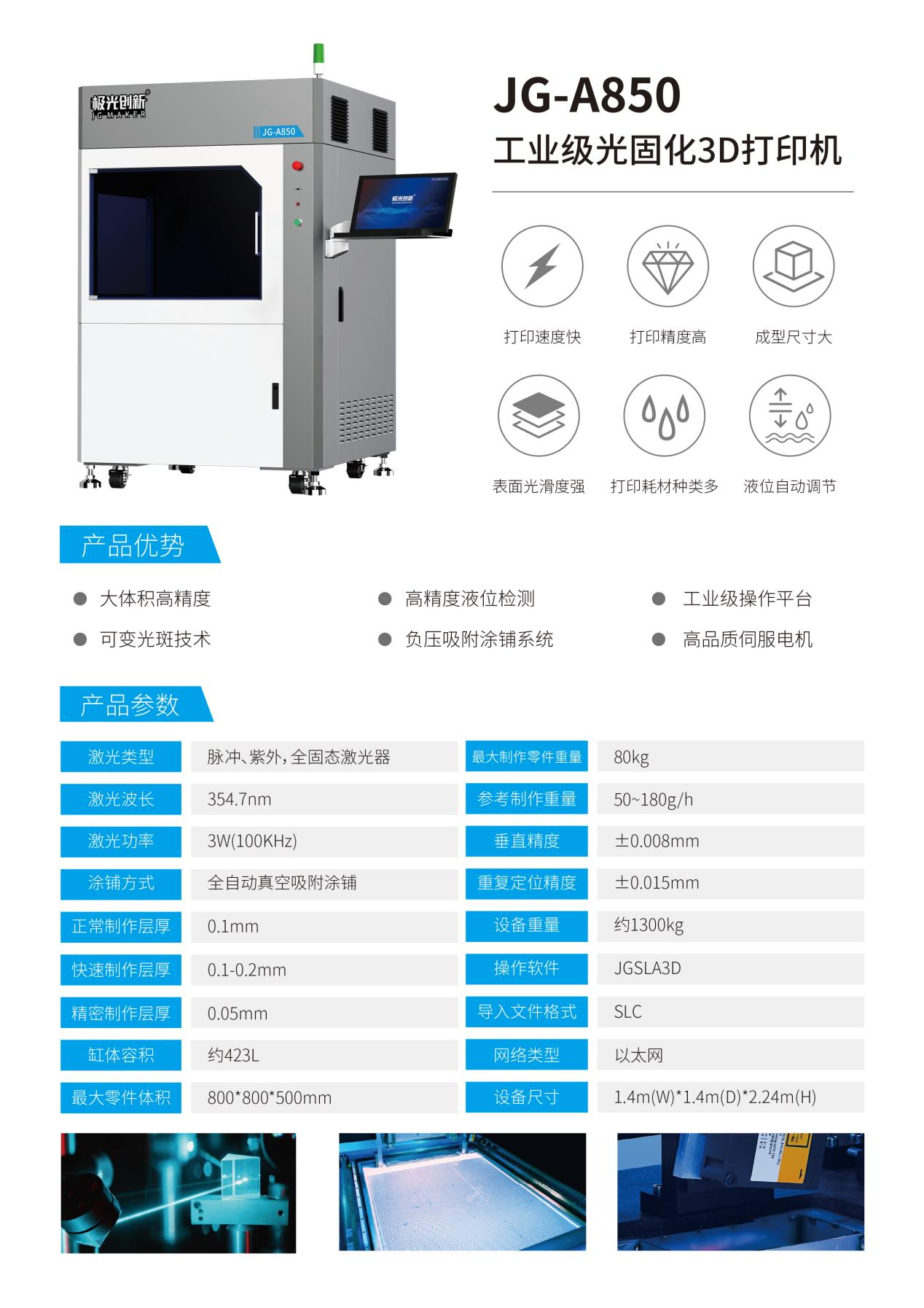 深圳市極光創(chuàng)新科技股份有限公司自2009年成立至今,一直保持初心,專注于3D打印技術(shù)的開發(fā)及綜合應用。隨著增材制造技術(shù)的迅速發(fā)展,極光創(chuàng)新工業(yè)級產(chǎn)品也深入到各行業(yè)中,其中工業(yè)級SLA光固化3D打印機更是憑借其高精度、高速度、低成本的特點,和600*600*410和800*800*500兩種超大打印空間,更大限度的提高了工業(yè)生產(chǎn)的生產(chǎn)率和靈活性,全方位滿足工業(yè)級大尺寸用戶的需求,受到了市場用戶的極度青睞。