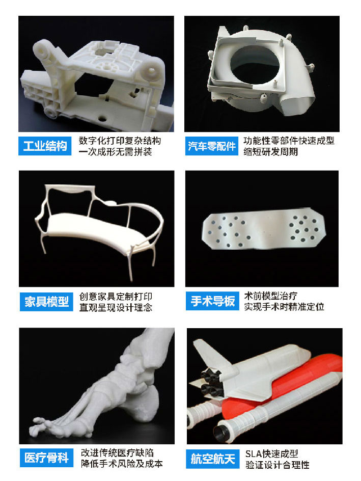 極光工業(yè)級SLA光固化3D打印機更是適配多種耗材,它支持透明、耐高溫、高強度等不同屬性的樹脂耗材,全方位滿足各行業(yè)客戶對材料特性的需求。廣泛用于醫(yī)療、文創(chuàng)、汽車、建筑、工業(yè)、航空航天、鞋類生產(chǎn)、教育、動漫等眾多領(lǐng)域。