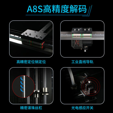 對于打印精度以及打印效果穩(wěn)定、機器運行穩(wěn)定的雙穩(wěn)定上,A8S投入了十足的零件用料和技術投入。運動組件、擠出組件、控制組件,在三大功能組件上都遵循了嚴格的質量控制。