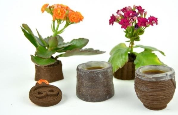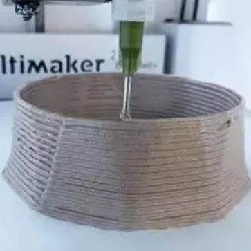 3D打印咖啡渣材料是將咖啡渣與黃原膠和纖維素膠(食品中常見的植物增稠劑)等成分混合后而形成的3D 打印的混合物。然后,利用改良過的3D打印機(jī)通過層層堆積制作成一個個堅(jiān)固耐用的作品。
