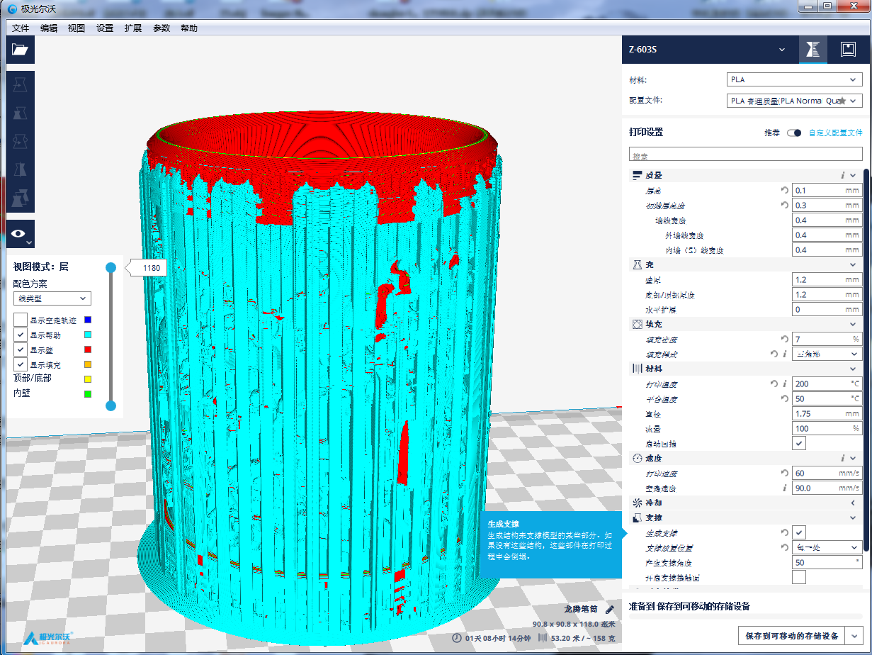 切片軟件一般是支持手動增加支撐和自動添加支撐的。自動添加支撐,系統會根據您所要打印的模型自動判斷在某些部位添加支撐物。