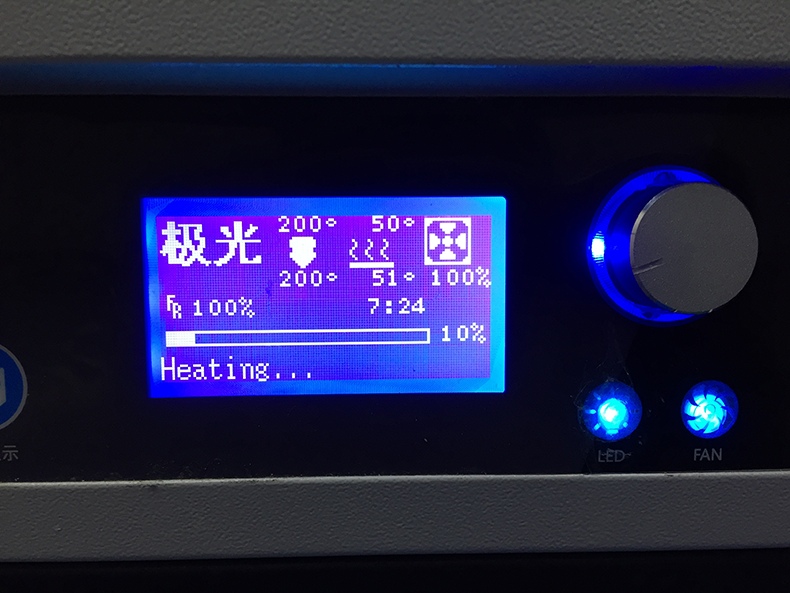 最后我們要設定打印頭及打印板的溫度,早先的機器我們一般需要事先將其加熱到一定溫度,進入一個預備打印的狀態,而現在的機型打印頭大多能夠迅速升溫,所以我們一般不需要“預加溫”這一過程,不過還是要事先設定好一個溫度。